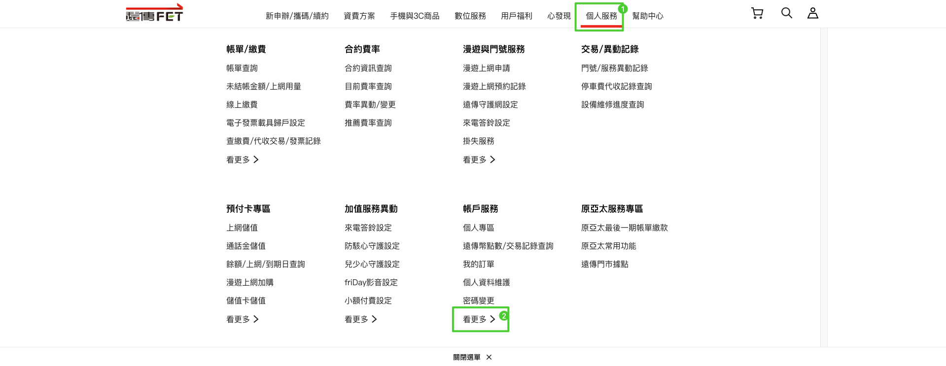 接著在選單的 個人服務-帳戶服務-看更多>